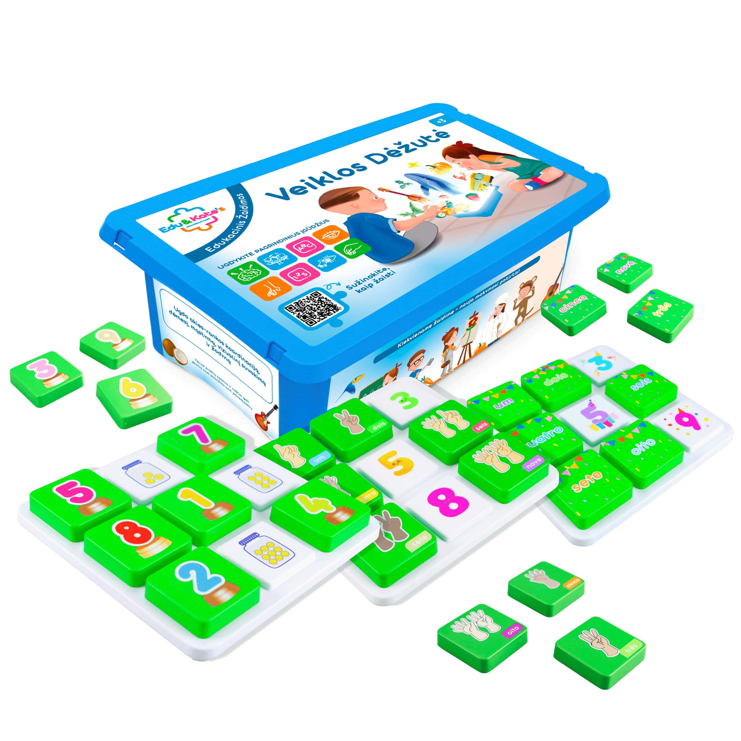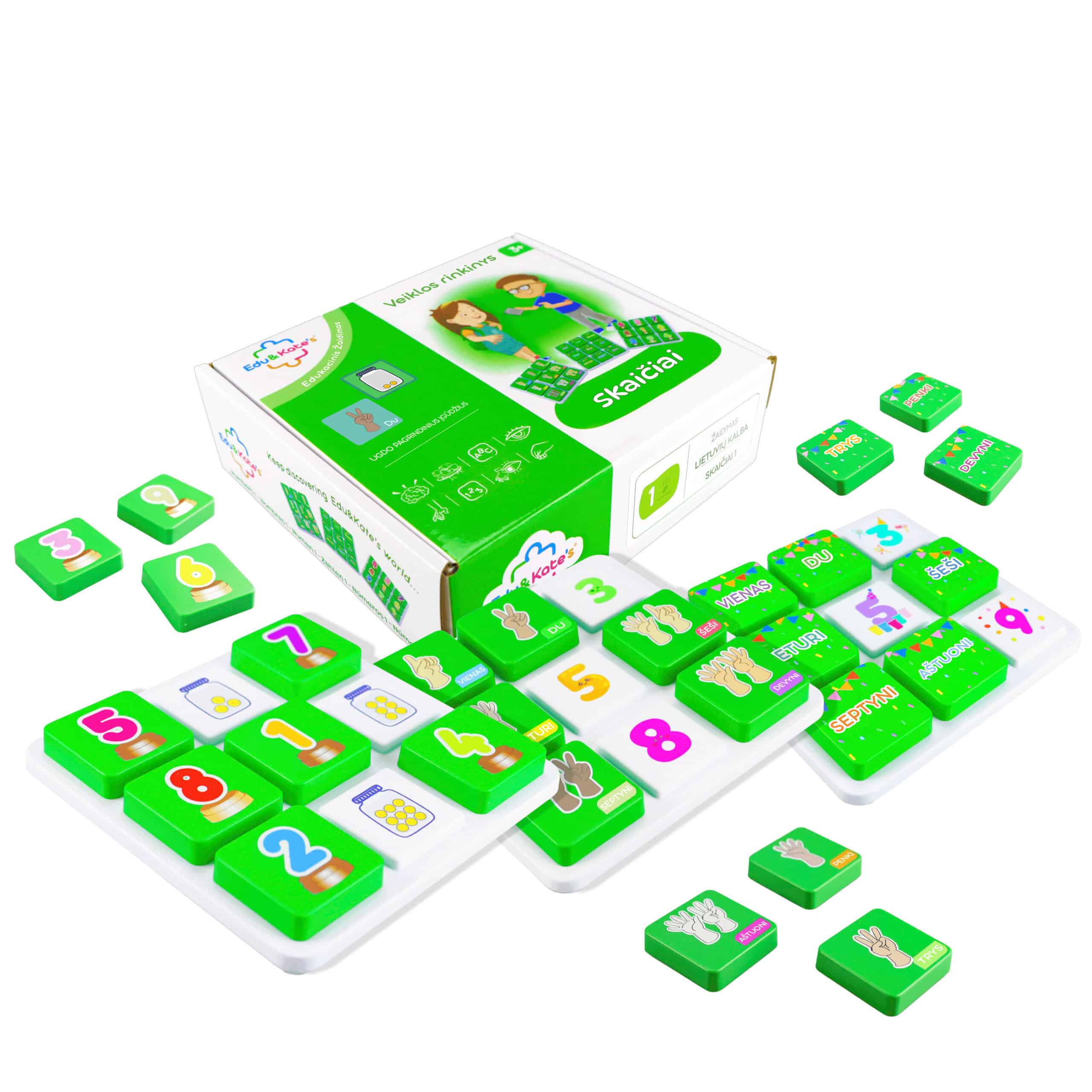 Multisensorinė mokymosi priemonė, padedanti vaikams (ir suaugusiesiems) per žaidimą įsisavinti skaičius nuo 1 iki 9. Mokymasis čia grindžiamas asociacijomis tarp skaitmenų, gestų ir žodžių – todėl jis suprantamas, įtraukiantis ir paremtas konkrečia patirtimi. Puikiai tinka darbui su ASS asmenimis, turinčiais kalbos, kognityvinių ar dėmesio sunkumų.