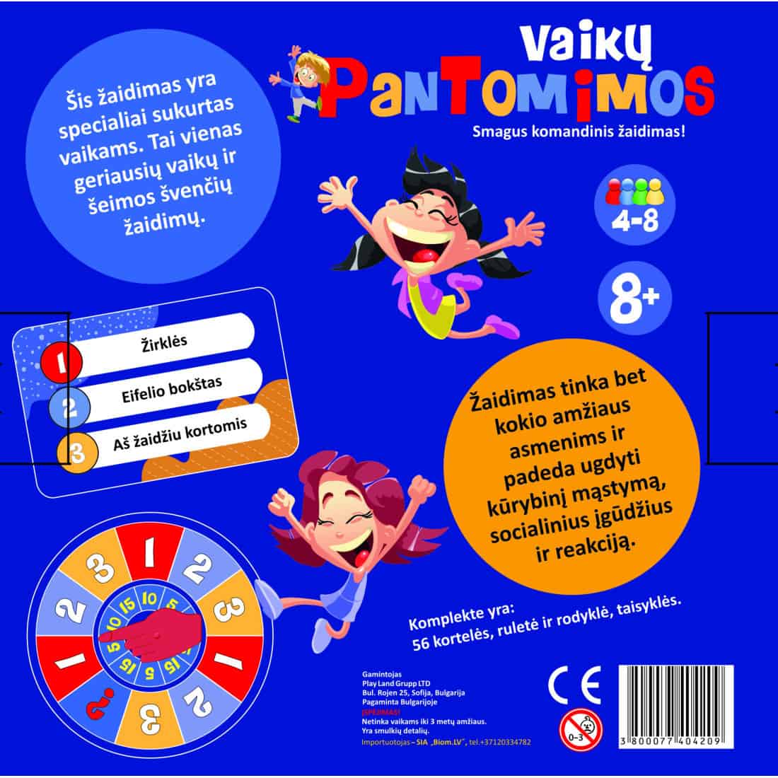 Grįžti į parduotuvę„Pantomima vaikams“ – linksmas ir įtraukiantis stalo žaidimas šeimai ar draugų kompanijai su vaikais nuo 8 metų. Žaidimas skirtas 4–8 žaidėjams, todėl puikiai tinka vakarėliams, šeimos susibūrimams ar klasės veikloms.